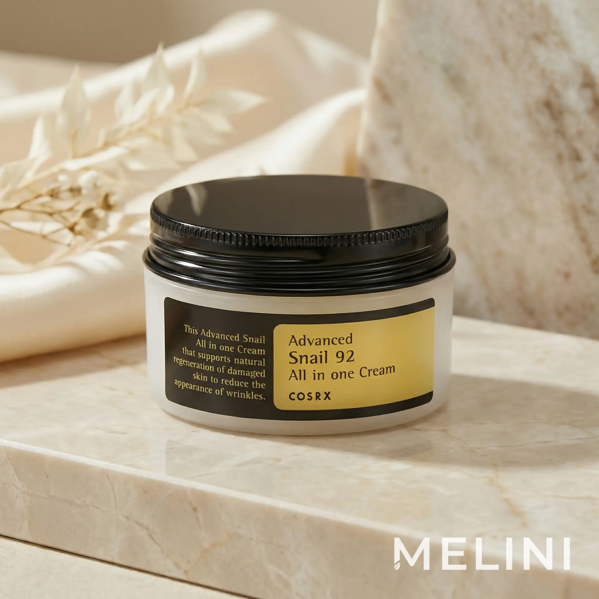 A Cosrx Advanced Snail 92 All In One Cream egy rendkívül tápláló arckrém, amely 92%-os csiga nyálkát tartalmaz, ezzel segíti a bőr regenerálódását.