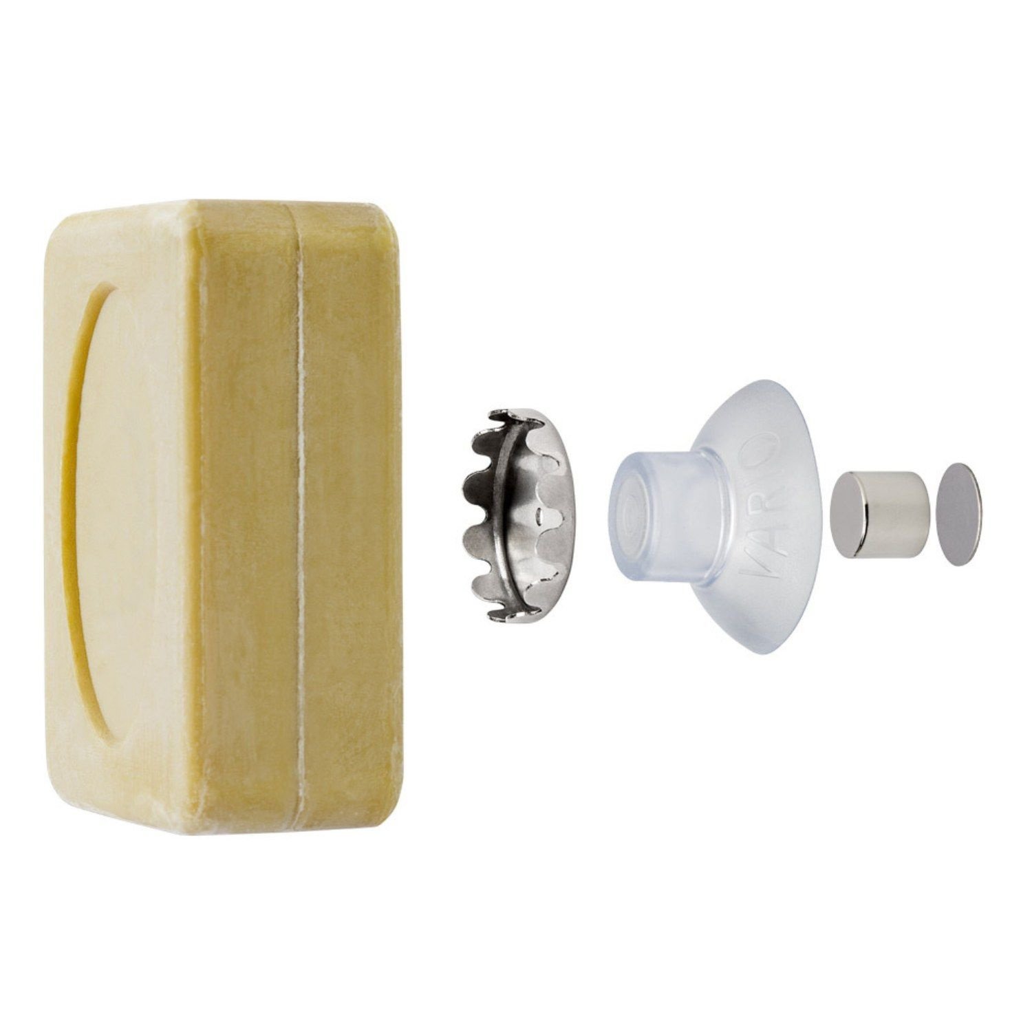 A szappan a használat után nem ázik fel, nem hagy nyomot a mosdón, hanem szinte lebegve, mindig a helyére kerül. A beépített mágnes teljesen védve van a víztől és a szappantól, így nem rozsdásodik, nem kopik, és hosszú élettartamot garantál.